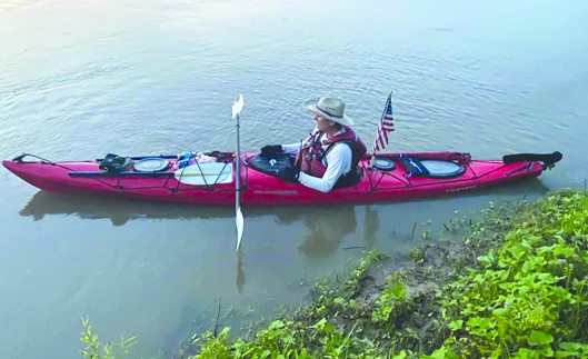 continuously thought about the things she put off and never got to do during her life. He realized he was doing the same thing and wanted to enjoy life’s pleasures while he could. With only two thunderstorms where he had to leave the water, Faust was happy with his trip and glad he checked it off of his bucket list. “It far exceeded my expectations. I wouldn’t say I’m a great outdoorsman but I’ve been doing things outdoors my entire life. I live on the Vermillion River in Pontiac – it’s literally my backyard,” Faust said. “I bought the house here because I love to kayak and be outside. So, I knew if you go outdoors and you’re going to be there for 60-plus days that there is going to be bugs, you’re going to have to deal with weather. It’s going to be hot or cold. It’s going to rain. “I got super lucky. I don’t know what it was about the bugs, but they weren’t bad. Around dusk you need to put on bug screen. I did that every night. It wasn’t a problem. I got very few bug bites. Normally I don’t wear shorts or go shirtless. I could walk around camp (continued on page 7) in under shorts and I didn’t have any worries with the bugs. I didn’t have any animal encounters. “It was remarkable. I expected tough times, but everything just seemed to go my way.” It’s surprising how many items a paddler can fit in a kayak. In Faust’s kayak he would carry: a hammock to sleep in, a tarp to go over it, sleeping bag, few extra clothes (set while in kayak, set of sleeping clothes, set of clothes to wear into town), twig stove, fresh water (eight 2 ½ liter old soda bottles filled with water which lasted about seven days), two weeks worth of food, spare paddle, umbrella, small one-person tent (used it twice), solar panel and battery packs to keep phone, radio (marine radio carried on his life jacket) and tracking device charged up. Everything fit inside the kayak except the umbrella and the solar panel, which was always on the deck of the kayak to charge all batteries during the day. Faust camped overnight for 46 of his 64-day voyage, while he stayed inside 18 nights. “I mostly camped, but I did stay at hotels. I researched a lot because that’s just how I am,” Faust said. “About a year to 1 ½ years before I actually planned to do the trip (which was last summer, but postponed due to Covid-19), one of the things that came up was I haven’t been away from home, my family and my friends since I went to trade school in Indianapolis right after high school. Back then I remember I