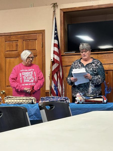On Feb 11, 2024, Pat Wilson Kelly and Mary Johnson had the honor of presenting six local Veterans with their Quilt of Valor. The quilts were donated by the Pink Ladies for QOV sponsored by Tickled Pink Fabric Store in Pontiac. Those receiving quilts were Lee Bunting, Bob Mosier, Gary Delong, Brian Trainor, Randy Provence and Kris Olson.