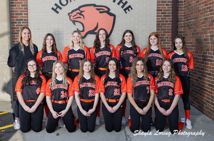 Back row l to r: Coach Amber Eisha, Ella Friddle, Kayla Scheuber, Bella Dinelli, Maddie Simms, Aubrey Male and Julianna Moats.