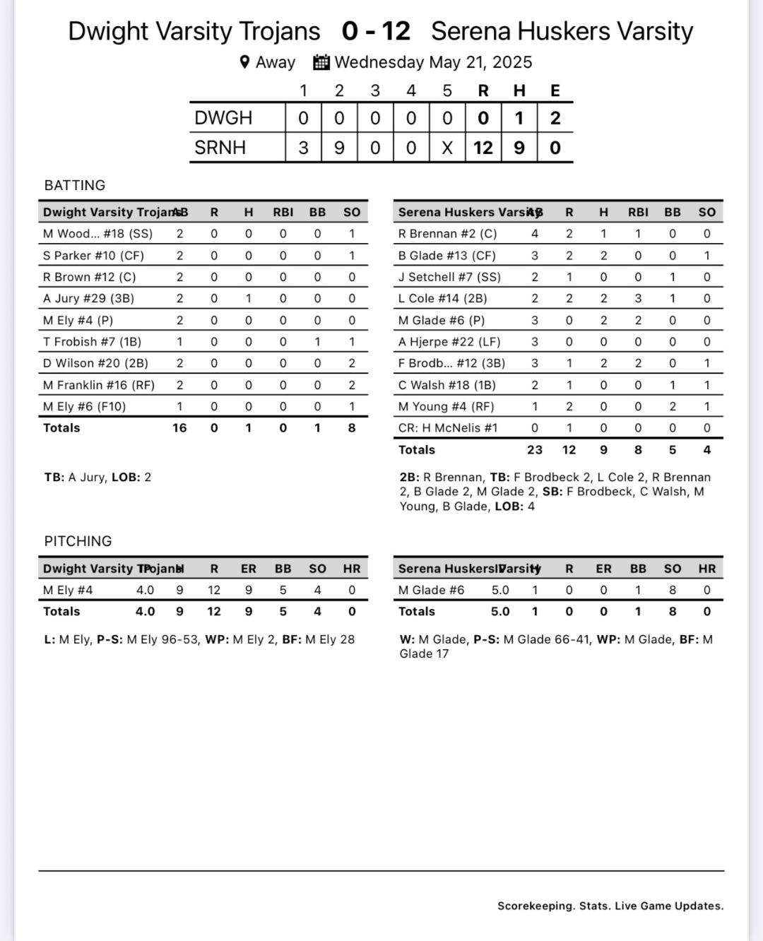 Dwight Lady Trojans lost to Reed Custer 9–4.
