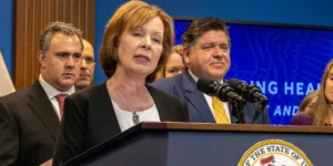 Before Gov. JB Pritzker named Gillespie to lead the Insurance Department in 2024, she served in the state Senate and was the lead sponsor of the 2023 legislation that called for setting up a state-based exchange. Before that, Illinois residents had to use the federal portal, HealthCare.gov, to enroll in ACA insurance.