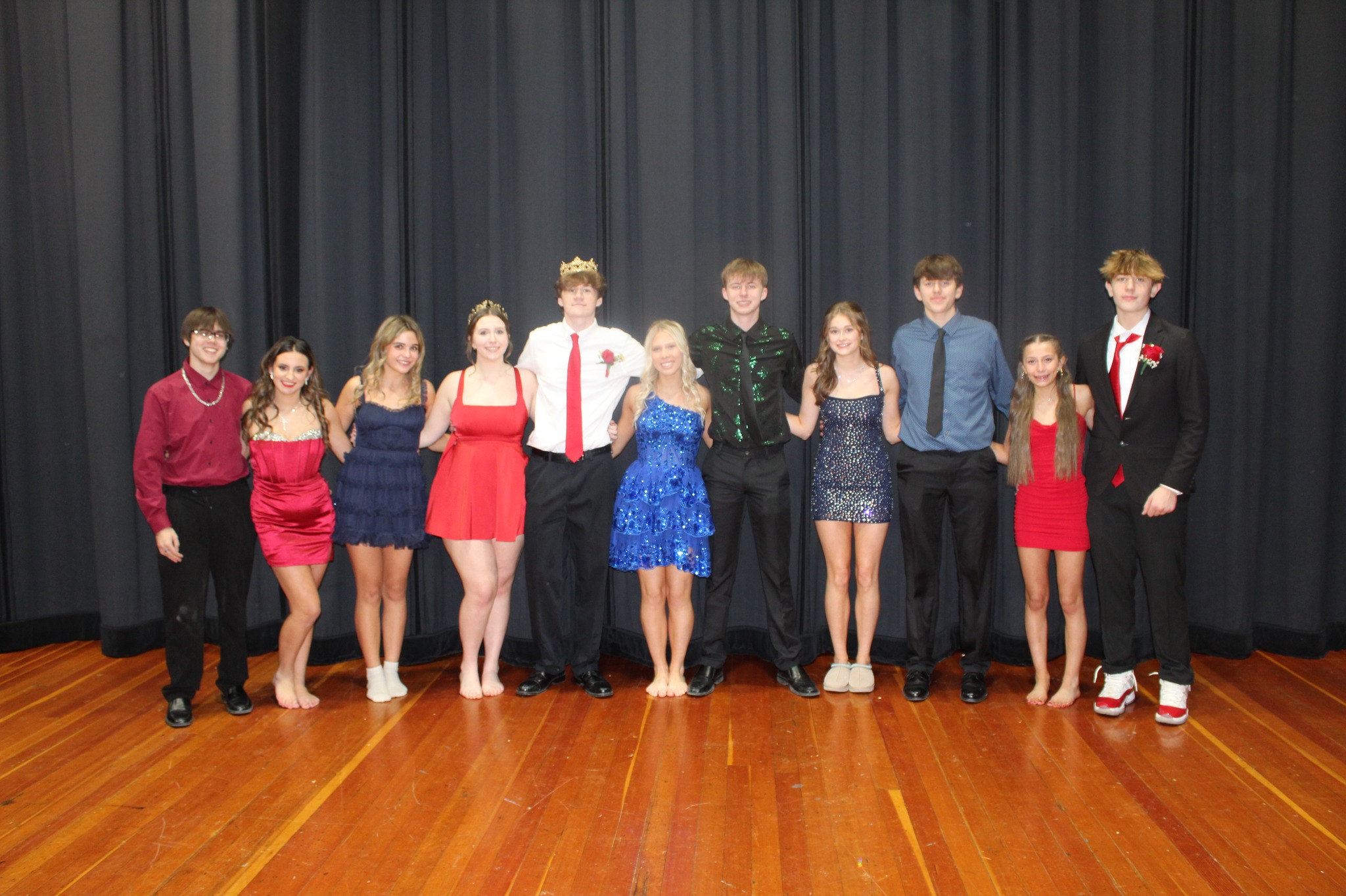 Pictured left to right:  Seniors: Dominick Shankel, Charlie Funes, Nina Siano, (not pictured Tony Vyce), Queen Britney Fatlan and King Jason Coughin, Juniors:  Ella Mack & Aiden Bodine, Sophomores: Lily Buck & Caden Christensen, Freshmen: Kaylee Tousignant & Ryan Male.