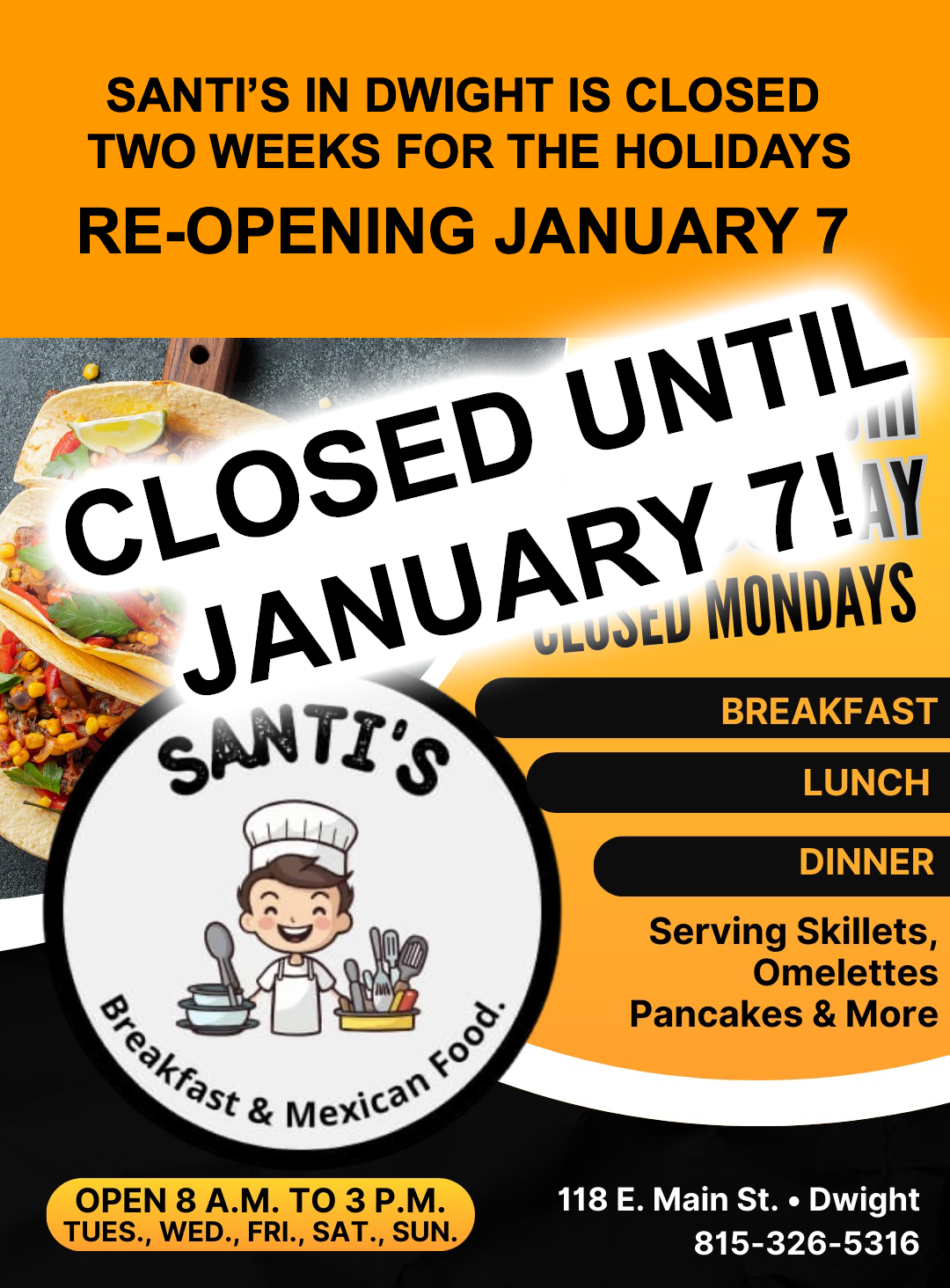 The library will be closed for the holidays on Dec. 24, 25, and 31, and Jan. 1.