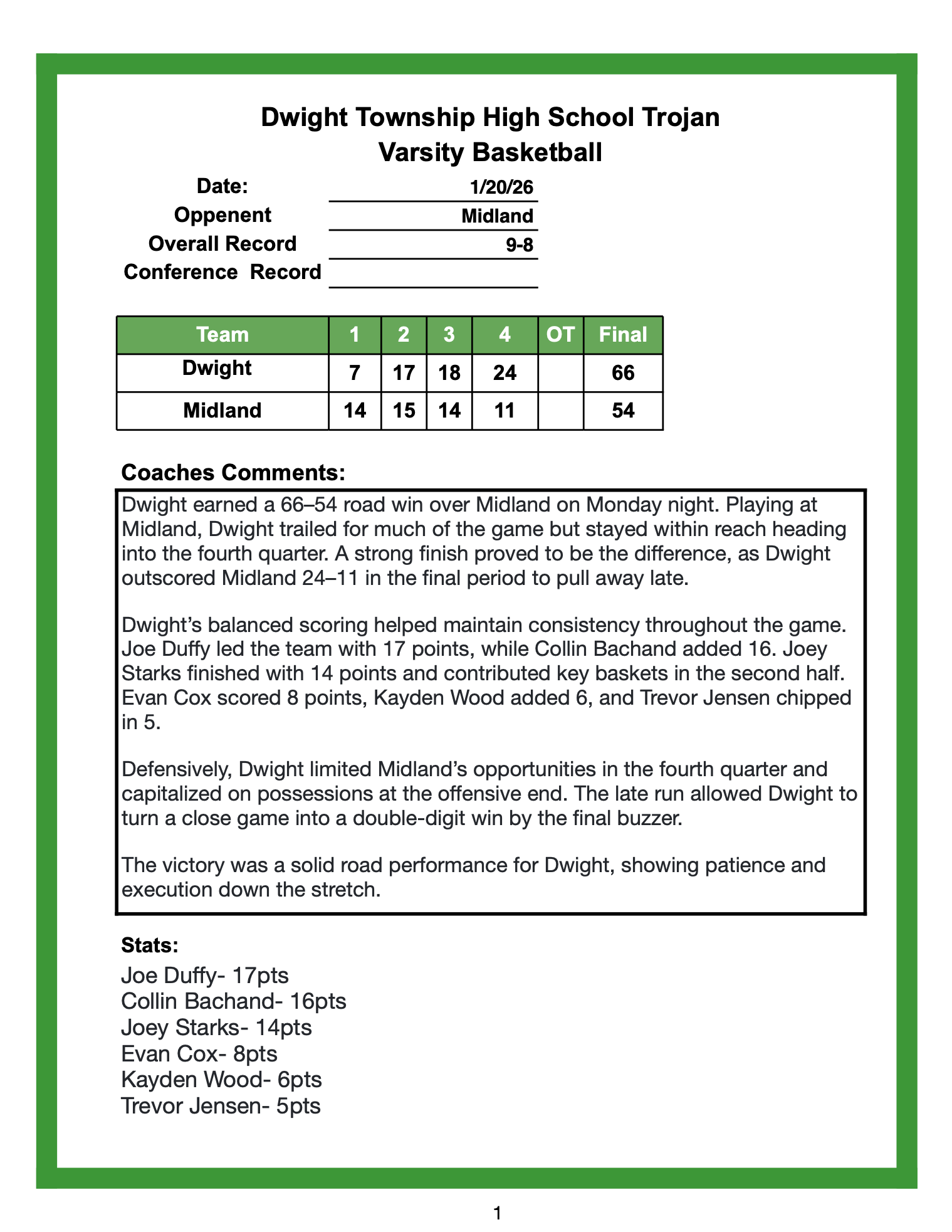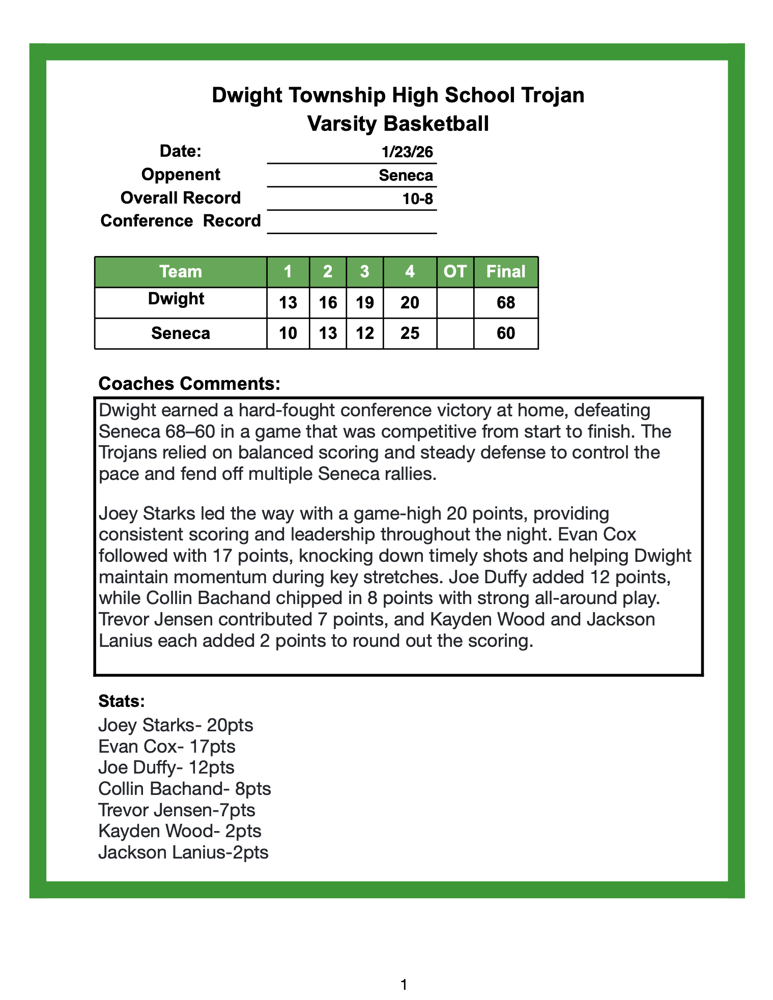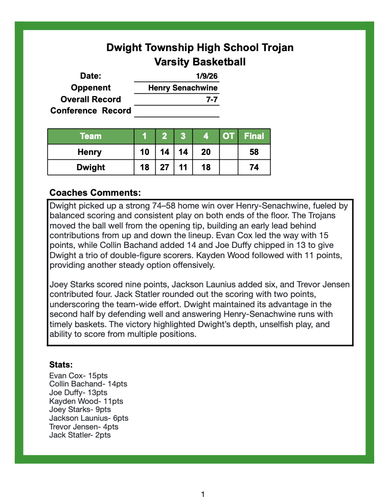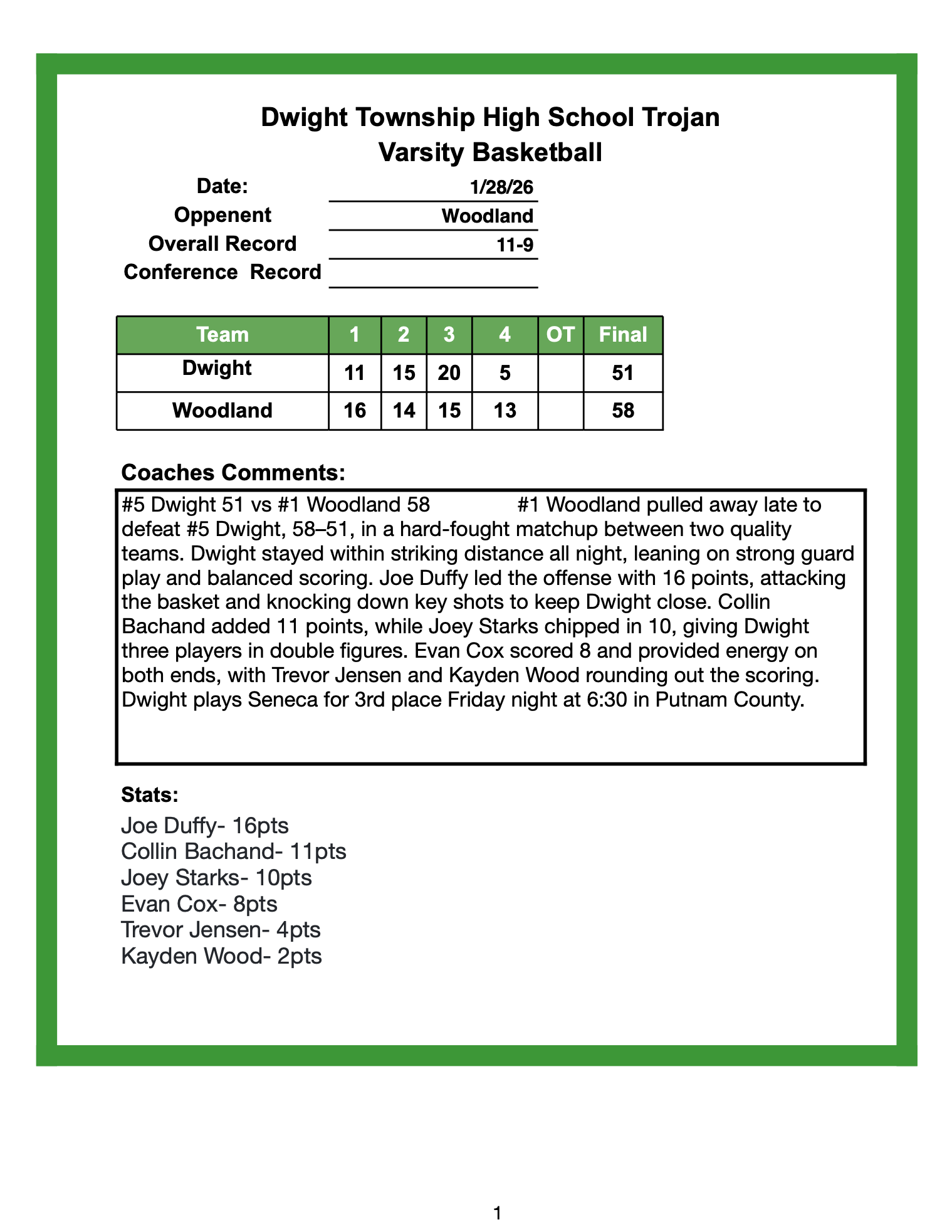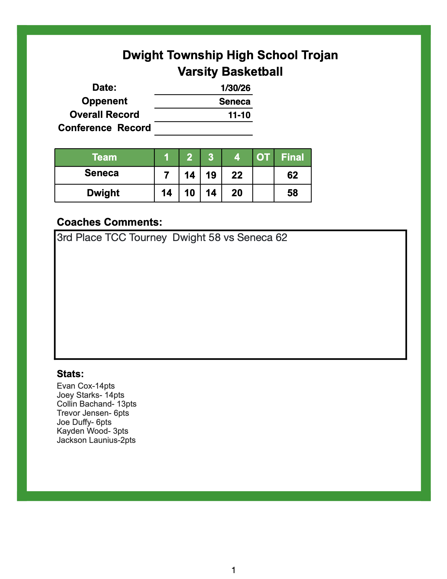 3rd Place TCC Tourney Dwight 58 vs Seneca 62
