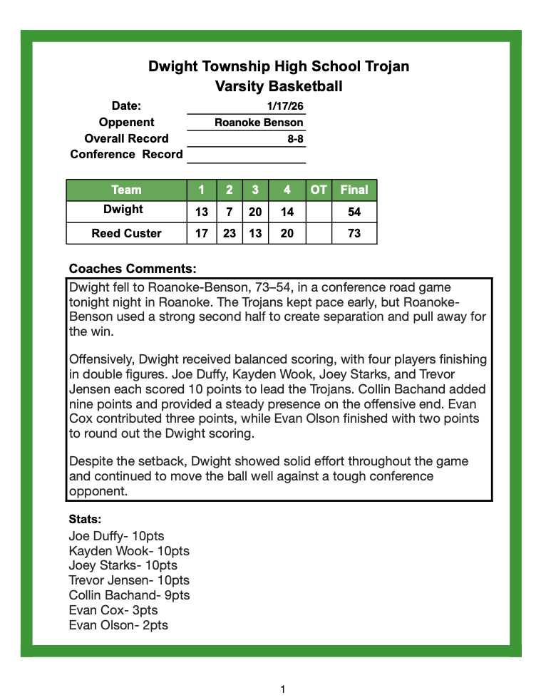 Dwight IL – 815-584-1901 – thepaper1901@sbcglobal.net