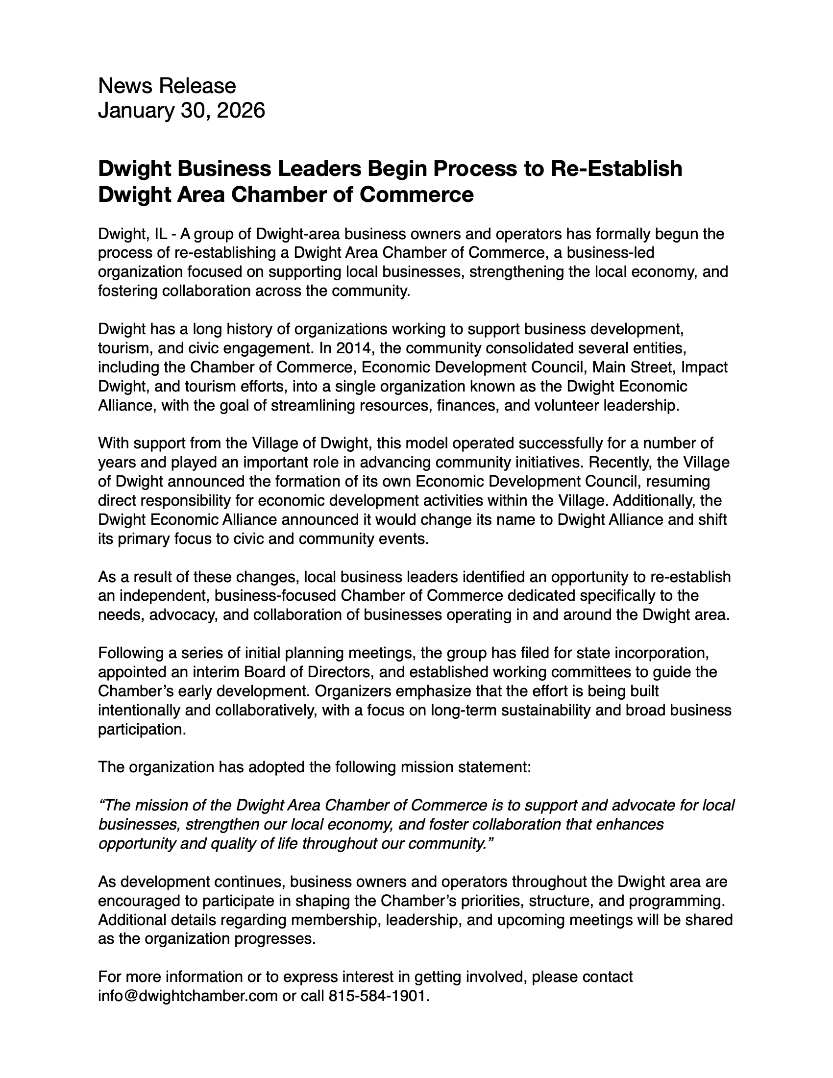 Dwight IL – 815-584-1901 – thepaper1901@sbcglobal.net