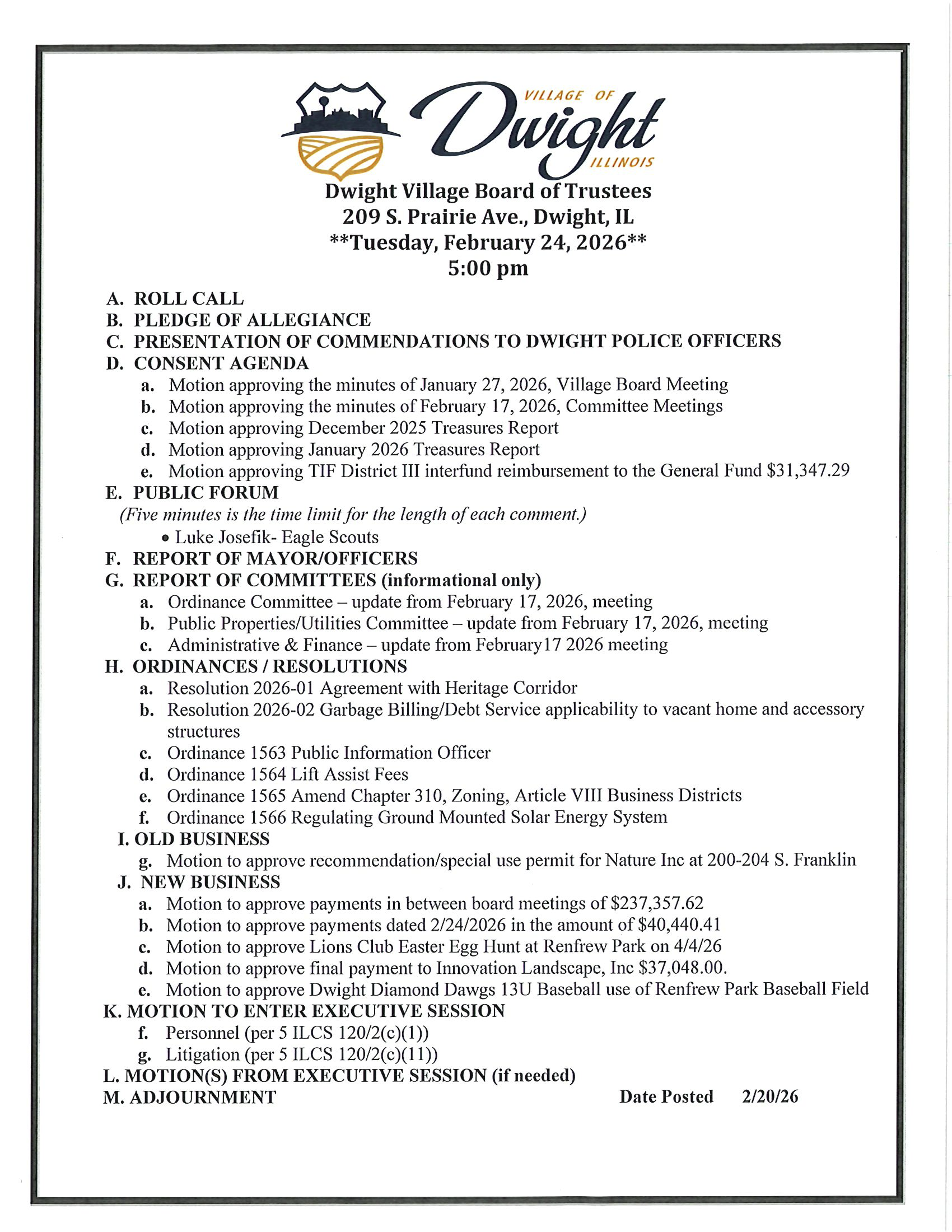 Dwight IL – 815-584-1901 – thepaper1901@sbcglobal.net