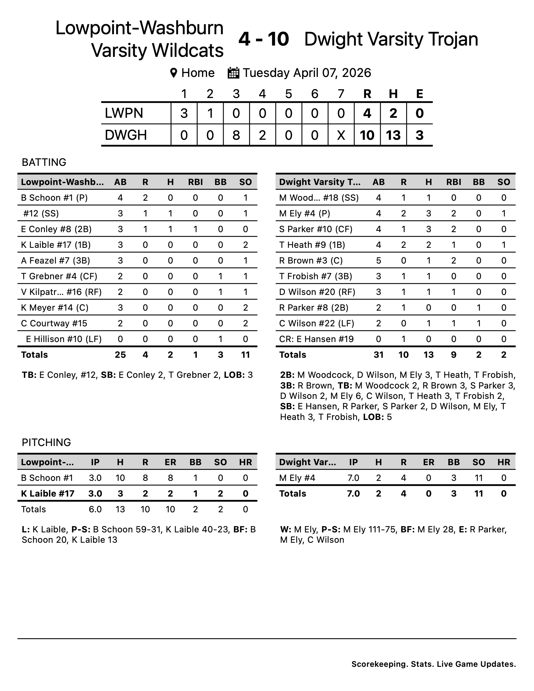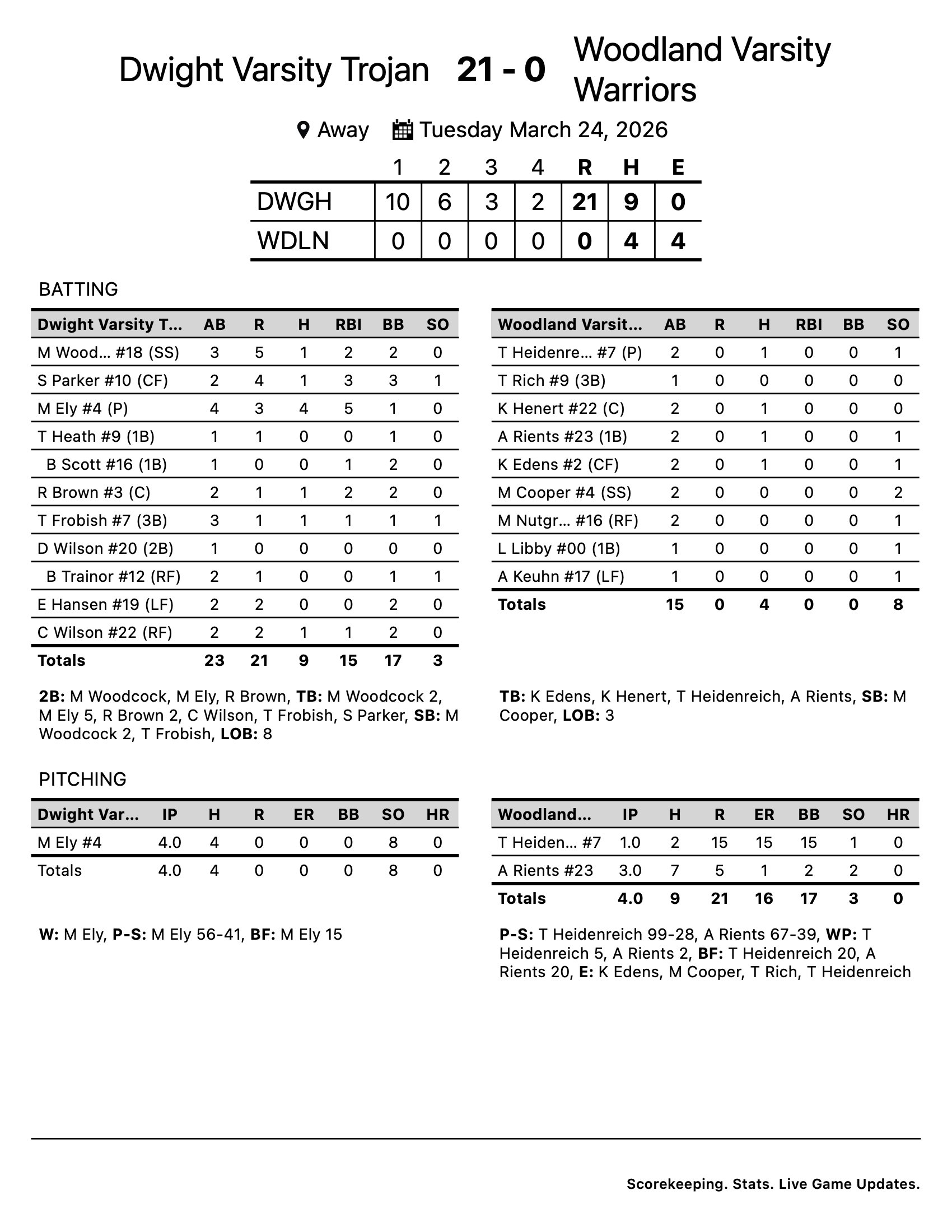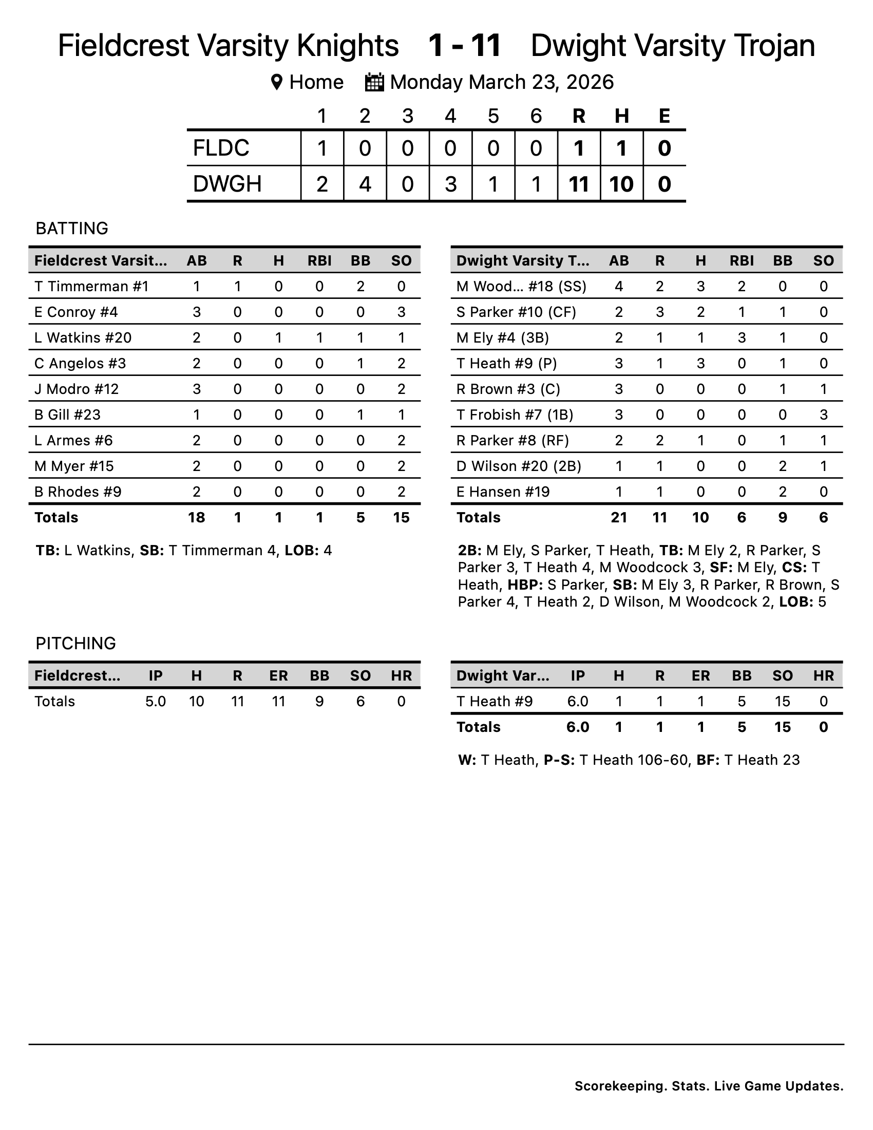 The Lady Trojans dominated over Fieldcrest with an 11-1 win in a strong all-around performance. Taylor Heath was unstoppable in the circle, racking up 15 strikeouts while allowing just one hit and one run. At the plate, Sarah Parker came through with a clutch double to move runners, and Madi Ely followed it up with a sacrifice fly to bring runs home. The Lady Trojans also brought the speed, swiping an impressive 14 stolen bases on the night.