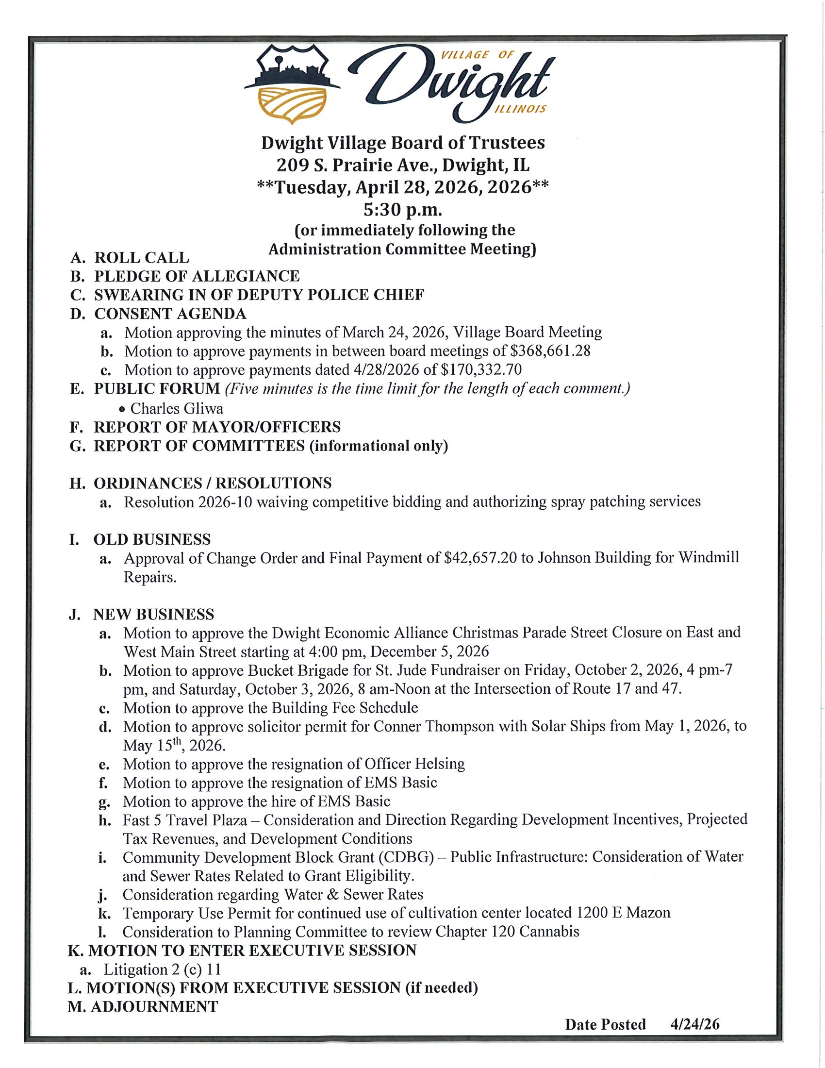 Dwight IL – 815-584-1901 – thepaper1901@sbcglobal.net
